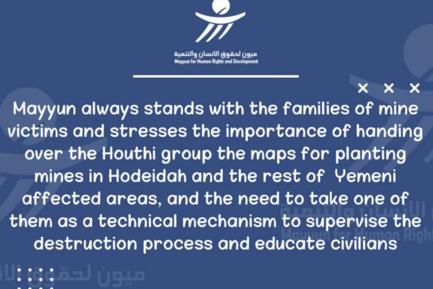 Statement by Mayyun Organization for Human Rights and Development Mayyun Organization for Human Rights and Development stands with the families of the five civilian victims who were killed by the explosion of landmines…