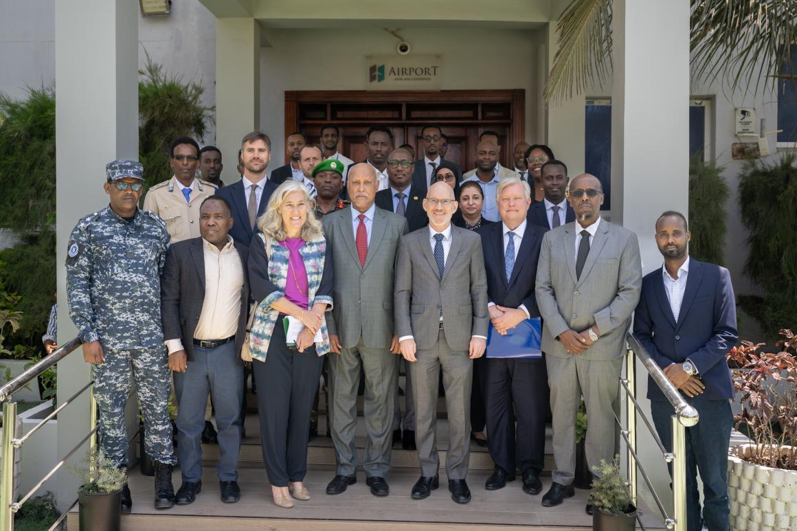 In addition to Mr. Swan, they included Somalia’s National Security Advisor, Awes Hagi Yusuf Ahmed; the Minister of Defence, Ahmed Moalim Fiqi; the Minister of Internal Security, Abdullahi Sheikh Ismail; the Officer-in-Charge of the UN Support Office in Somalia (UNSOS) and Director of Mission Support, Qurat-Ul-Ain Sadozai; the Chief of the UN Mine Action Service (UNMAS) Programme in Somalia, Fran O’Grady; and representatives from the African Union, United States of America, United Kingdom and European Union.
